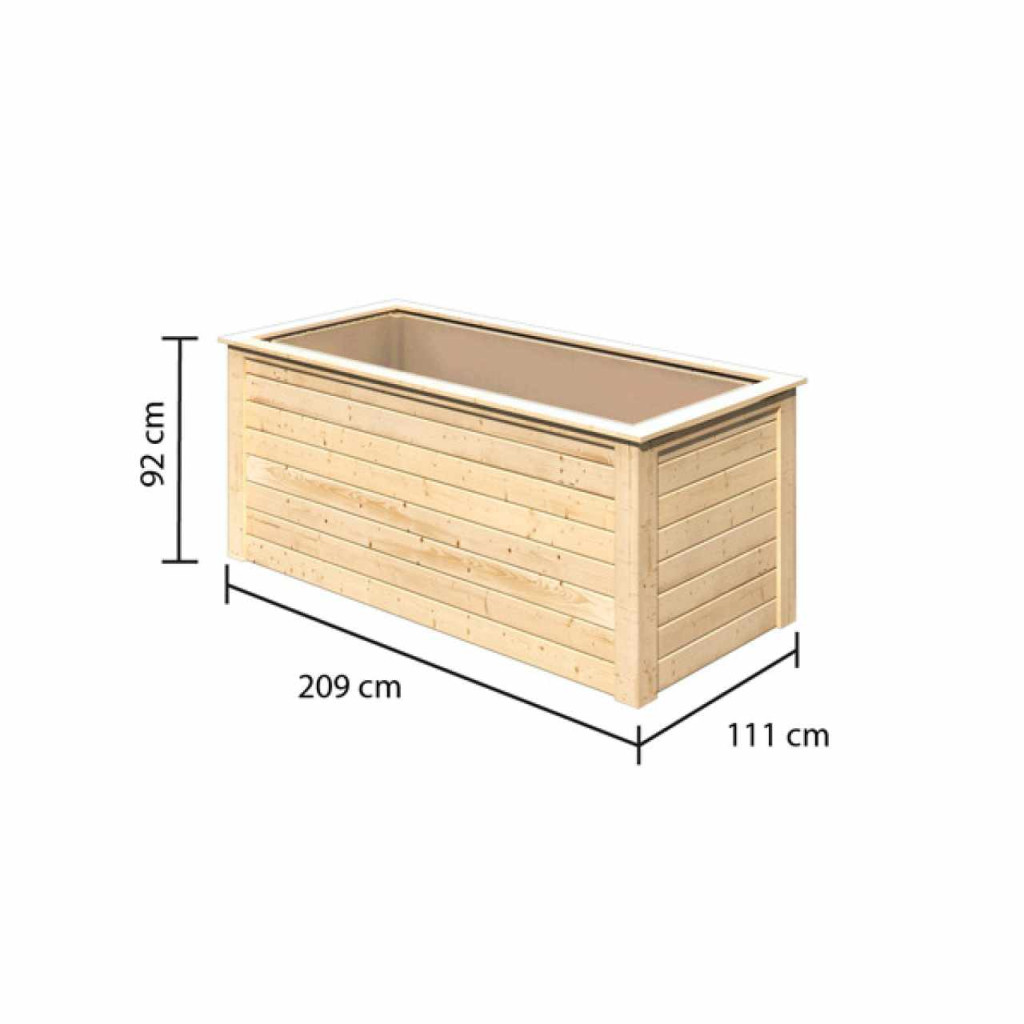 Magaságyás KARIBU, sze 209 x m 111 x ma 92 cm, fa 28 mm vastag, a virágládának nincs alja.