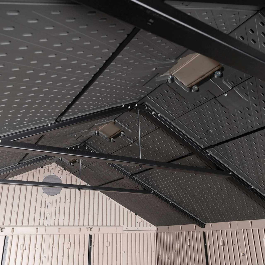 Robusztus "új generációs" műanyag ház kertészeti, sportolási, uszodai, grillezési, kempingezési, motorozási és egyéb igények tárolására. Modern kialakítás, könnyű összeszerelés, egész éves használat. A kertes ház fém tartószerkezetű, a dupla falak, a tető, a dupla ajtók és a padlózat masszív, nagyon tartós és gyakorlatilag törhetetlen műanyagból készült. A műanyag csúszásmentes padló a ház része (az ár tartalmazza). A ház zsanéros dupla ajtókkal van felszerelve. A dupla műanyag fal vastagsága 26 mm. A tető lejtése 30o, ami jelentősen csökkenti a tetőn lévő hó mennyiségét és nyomását. A ház anyaga (rendkívül ellenálló polietilén UV szűrővel) nem sárgul el, nem válik rideggé, így nincs szükség a ház rendszeres festésére, mint pl. faházaknál - a műanyag kertes ház gyakorlatilag karbantartásmentes. A házat úgy tervezték és gyártják, hogy az összeszerelés a lehető legegyszerűbb és legrövidebb legyen. Egyszerűen pattintsa be az egyes alkatrészeket a szomszédos részekre, és rögzítse a csatlakozást egy csavarral.