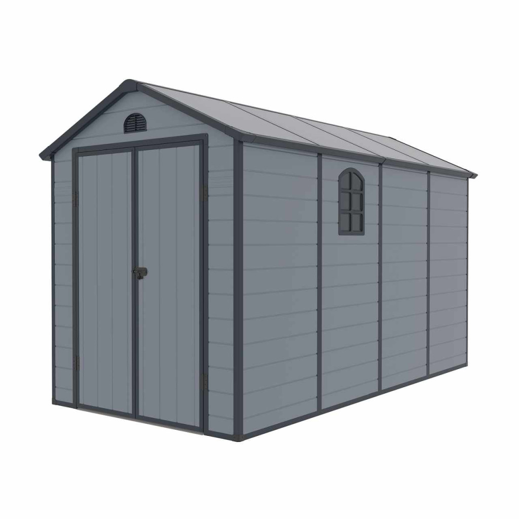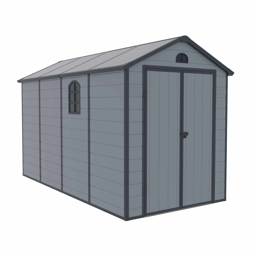 Az elegáns és érdekes kialakítású LONGFORD 612 műanyag kerti ház egy gyakorlatilag karbantartásmentes kerti ház kerti szerszámok, kerékpárok, fűnyírók, medencetartozékok, fa stb. tárolására. Modern kialakításának és egyszerű összeszerelésének köszönhetően ez a ház egész évben praktikus és stílusos tárolóhelyet biztosít Önnek.