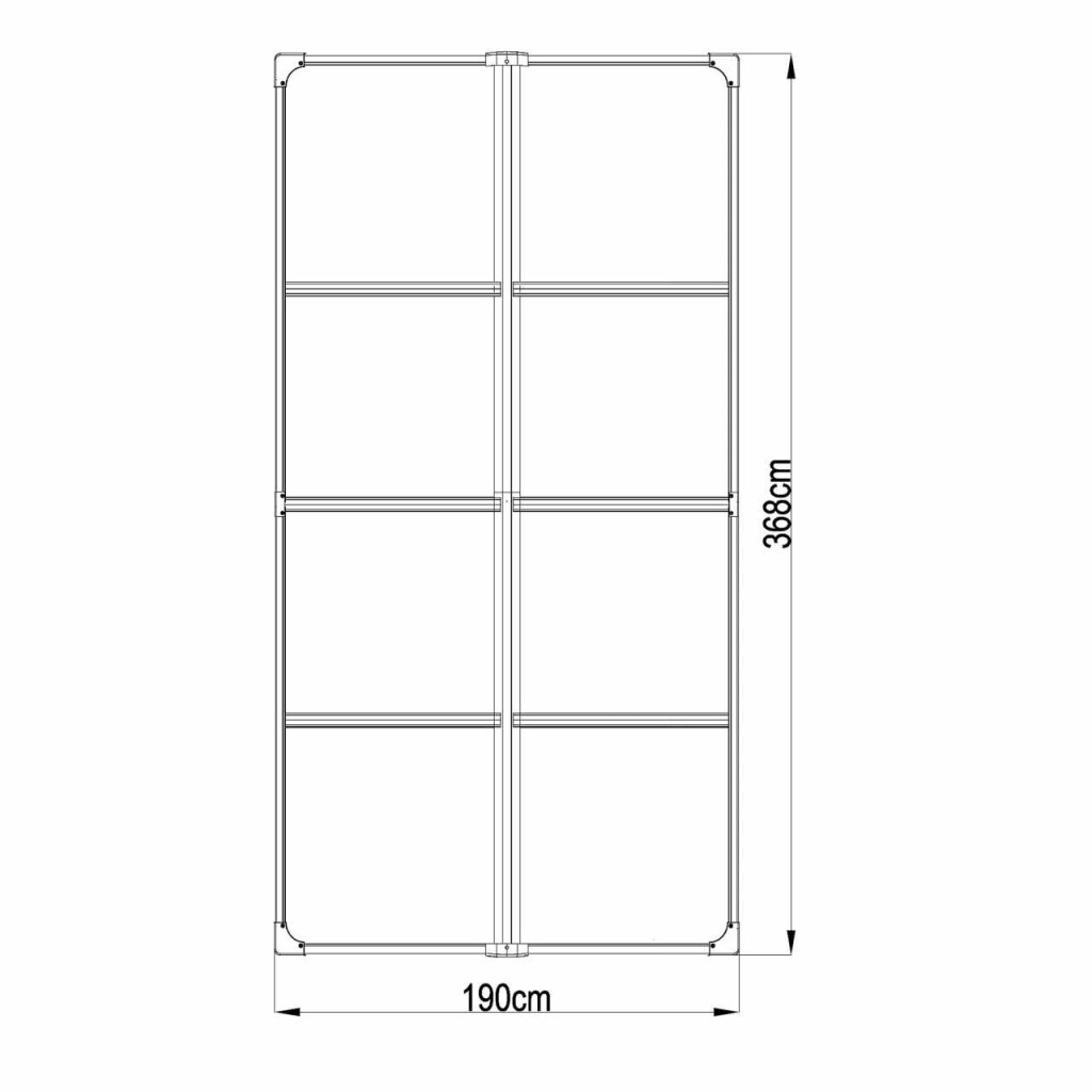 • tető méretei 190 x h 368 cm