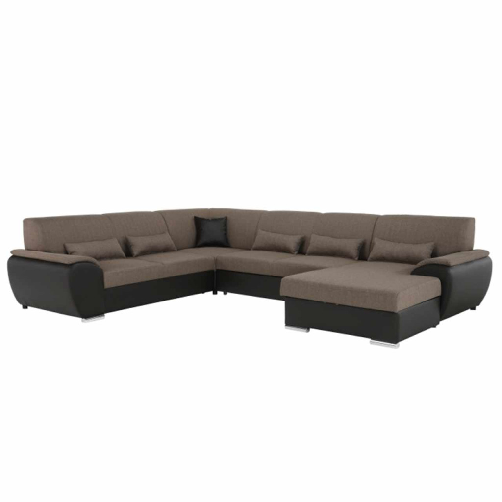 U alakú ülőgarnitúra, barna szövet / barna textilbőr, jobb oldali kivitel, EMILY U
