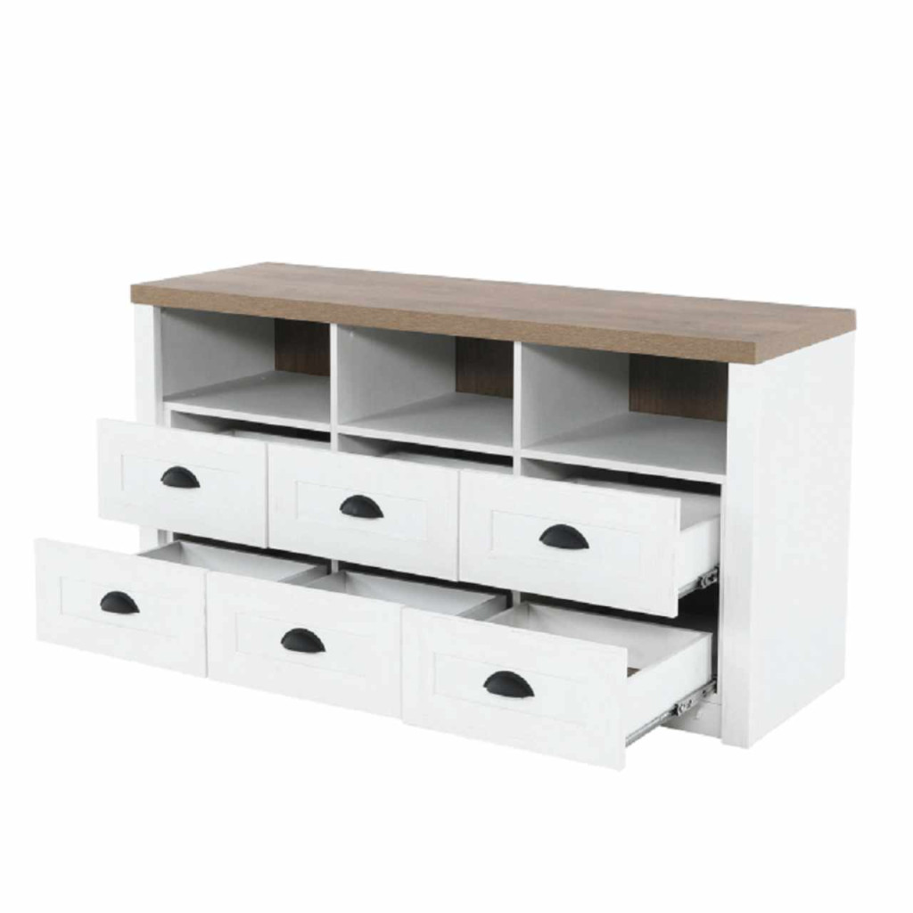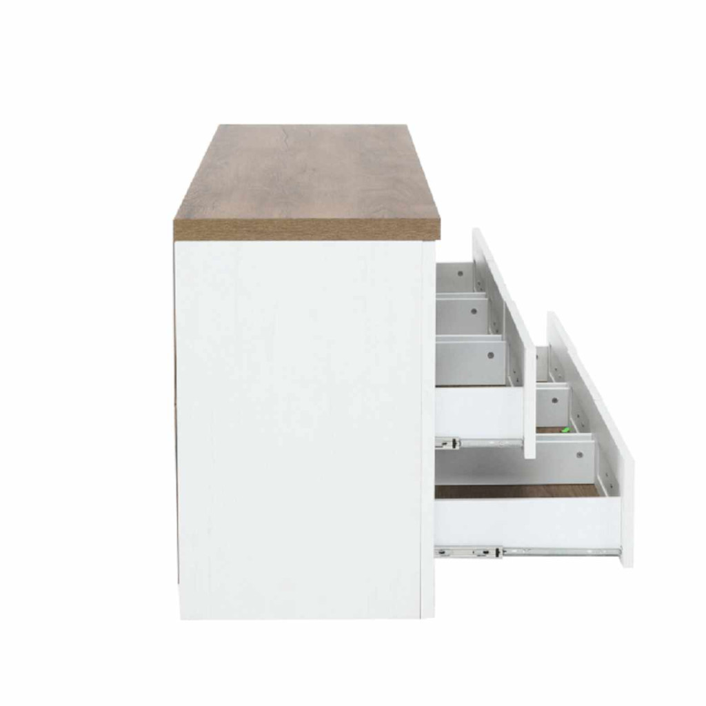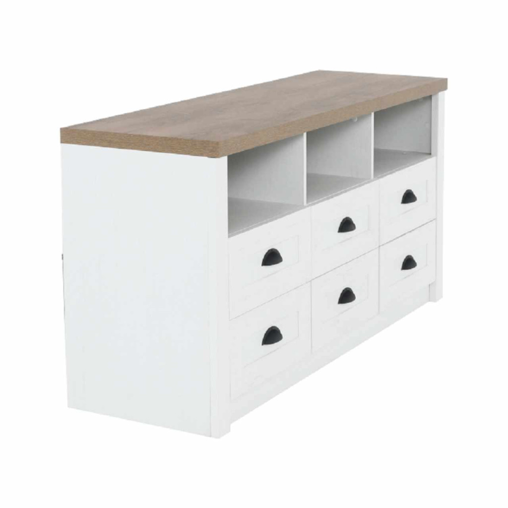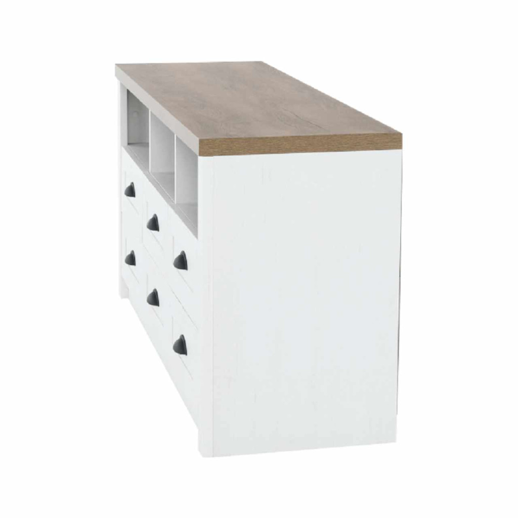 Komód PROVANCE sosna andersen/tölgy lefkas színváltozatban. Anyag: laminált DTD Méretek (SzéxMéxMa): 130x43x68 cm Váz vastagsága: 15 mm Felső lap vastagsága: 36 mm Szétszerelt állapotban szállítjuk