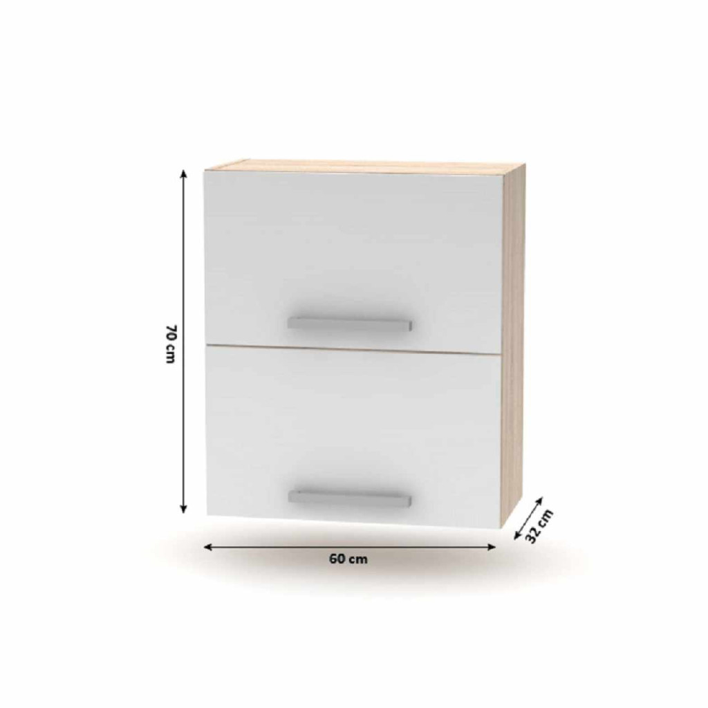 Felsőszekrény billenő 2DV, NOPL-008-VHAnyag: laminált DTD Színe: sonoma tölgy/fehér Méretek (SzéxMéxMa): 60x32x70 cm Minőségi szlovák termék. Szállítás szétszerelve.Az alap konyhasort és az összes alsó szekrényt munkalap nélkül szállítjuk. Vásárolható a munkalap - vastaság 38mm ára 28 900 Ft/fm Vásárolható hozzá univerzális (J/B) mosogató LAY ON.