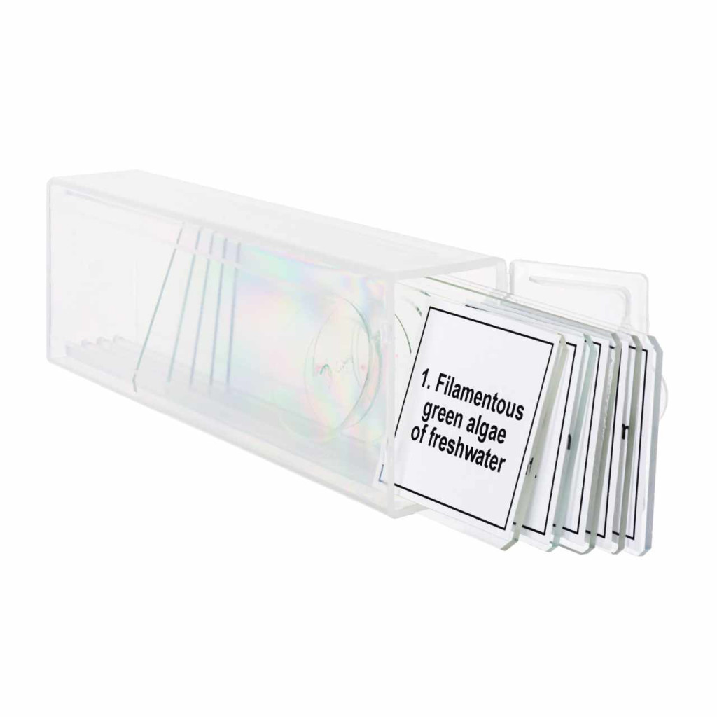 A Discovery Prof DPS 5 mikropreparátum mintakészlet. A „Biológia” megnevezésű összeállítása öt darab professzionális besorolású tárgylemezt tartalmaz növényi szövetekkel, algákkal és gombák szöveteivel. Tökéletesen használhatók bármely alsó megvilágítású optikai mikroszkóppal. Az előkészített tárgylemezekkel némi időt takaríthat meg magának – csupán annyit kell tennie, hogy a kiválasztott mintát a mikroszkóp tárgyasztalára helyezi és el is kezdheti a megfigyelést.