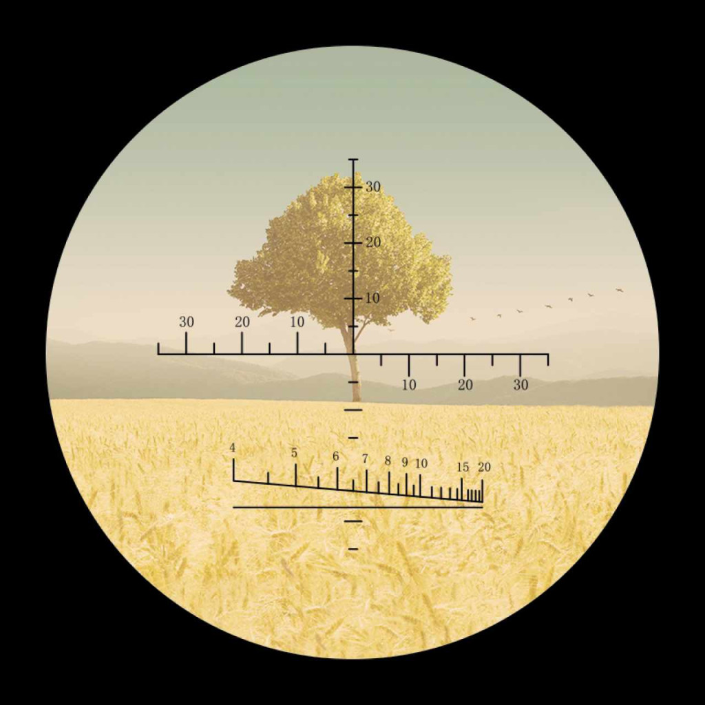 • Távmérő skála és léptékes irányzék mérések végzéséhez a terepen