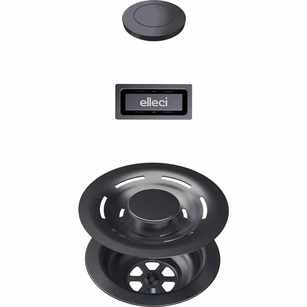 ELLECI - FLOW-PRO OPEN UP (nyomógombos) automata dugókiemelő, négyzetes túlfolyóval egymedencés mosogatókhoz - fegyveracél színben. Lehetővé teszi a lefolyó távoli nyitását és zárását.  Alkalmazható Elleci Best, Best Workstation és Spazio mosogatókhoz.