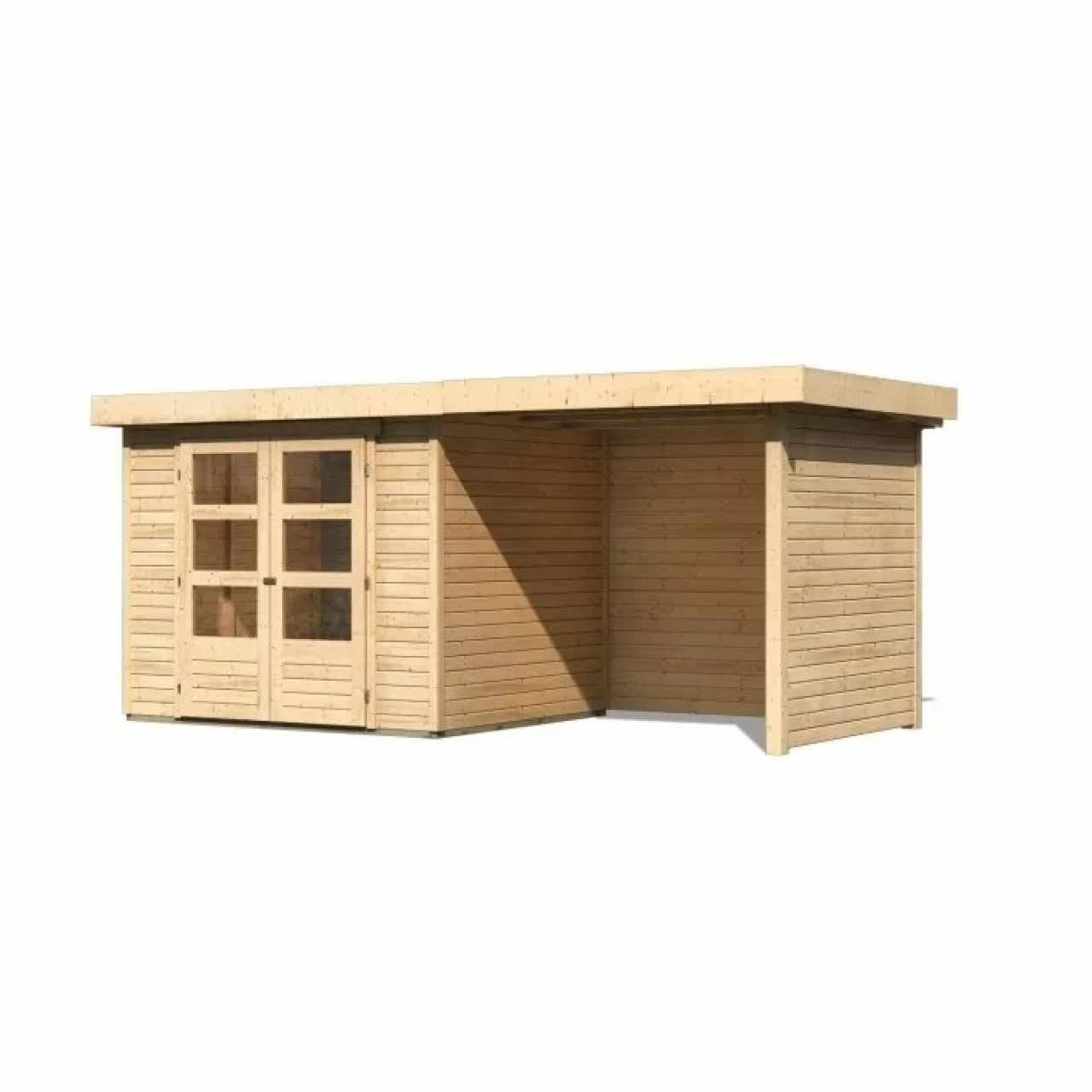 Egy faház alapmodellje kertjébe. Ez a modell lapos tetővel és dupla csuklós ajtókkal rendelkezik, mindkét szárnyban ablakkal. A ház építőanyaga 19 mm vastagságú, északi lucfenyőből tökéletesen mart faprofil. Bontott állapotban készletben szállítjuk, ahol a falak egyedi faprofilokból állnak, amelyeket egyszerűen össze kell rakni és összecsavarozni, a tető egyetlen deszkából. Ez rendkívül egyszerű összeszerelést garantál, amelyet minden ezermester el tud végezni.