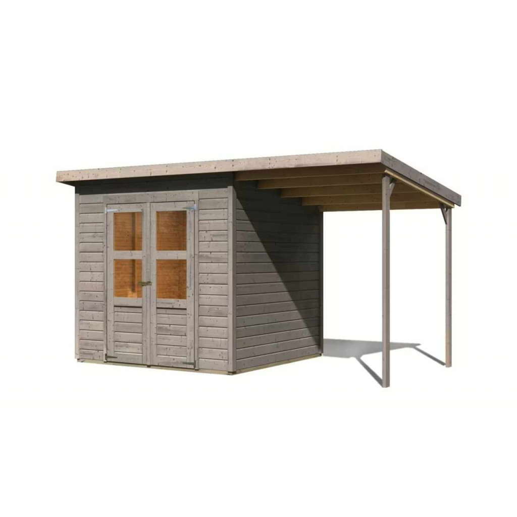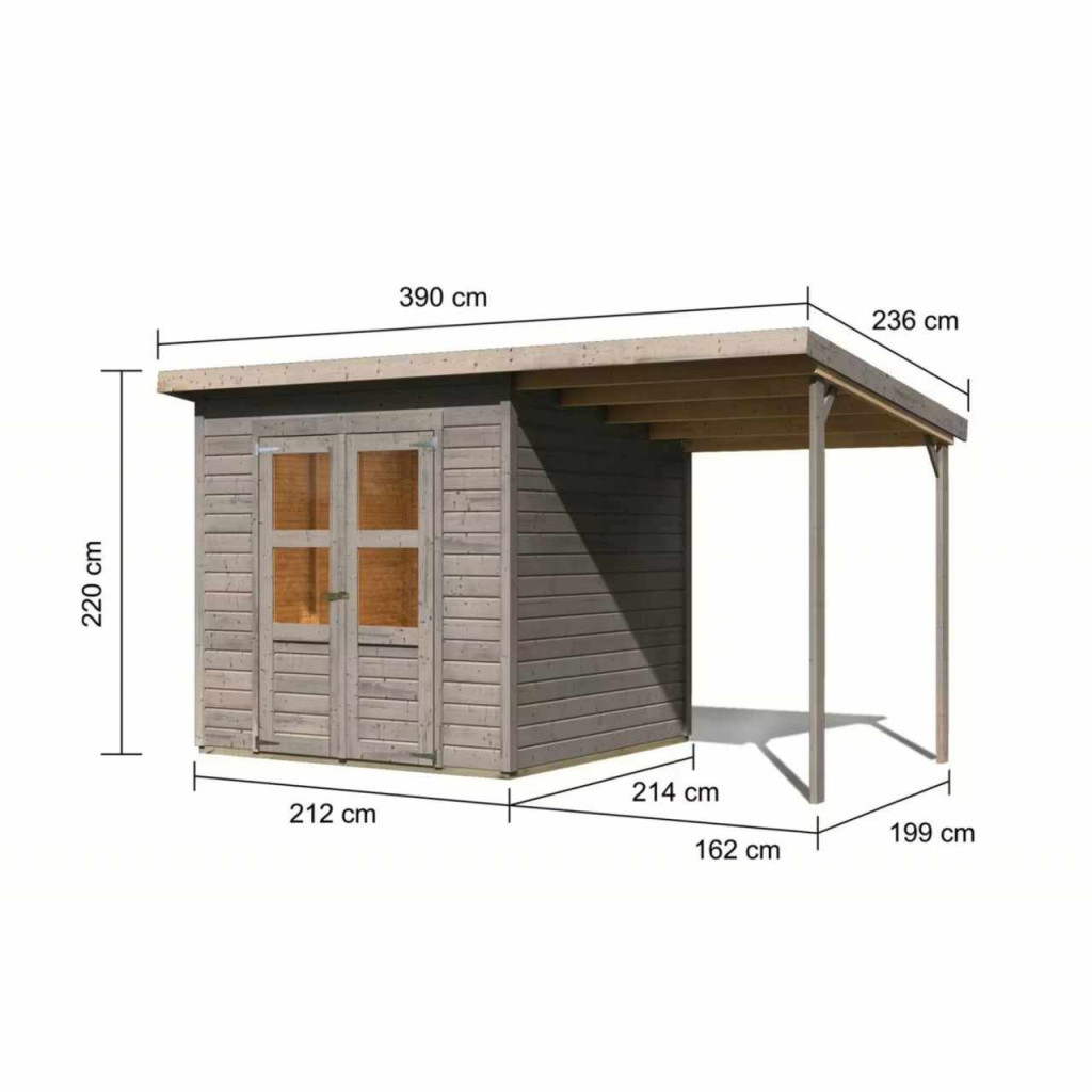 Egy faház alapmodellje kertjébe. Ez a modell lapos tetővel és dupla csuklós ajtókkal rendelkezik, mindkét szárnyban ablakkal. A ház építőanyaga 14 mm vastagságú, északi lucfenyőből tökéletesen mart faprofil. Bontott állapotban készletben szállítjuk, ahol a falak egyedi faprofilokból állnak, amelyeket egyszerűen össze kell rakni és összecsavarozni, a tető egyetlen deszkából. Ez rendkívül egyszerű összeszerelést garantál, amelyet minden ezermester el tud végezni.