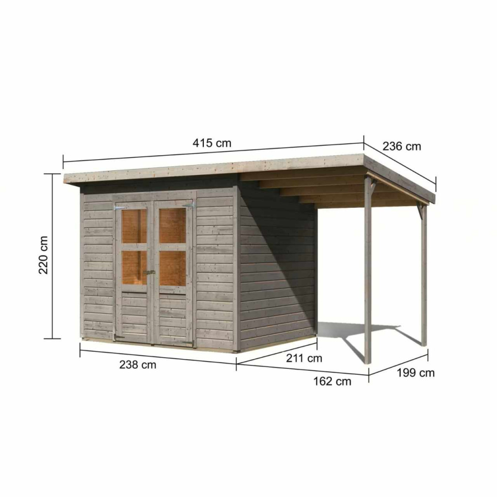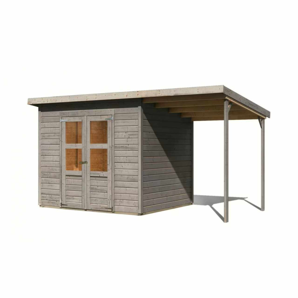 Egy faház alapmodellje kertjébe. Ez a modell lapos tetővel és dupla csuklós ajtókkal rendelkezik, mindkét szárnyban ablakkal. A ház építőanyaga 14 mm vastagságú, északi lucfenyőből tökéletesen mart faprofil. Bontott állapotban készletben szállítjuk, ahol a falak egyedi faprofilokból állnak, amelyeket egyszerűen össze kell rakni és összecsavarozni, a tető egyetlen deszkából. Ez rendkívül egyszerű összeszerelést garantál, amelyet minden ezermester el tud végezni.