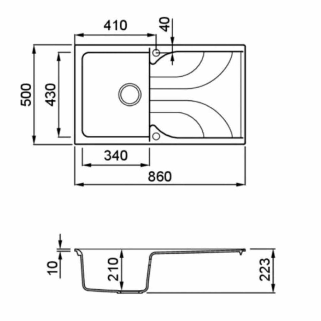 • Mosogatótálca mérete: 860x500