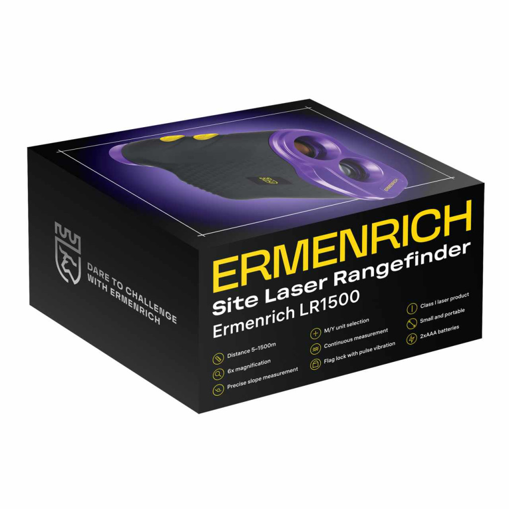 Az Ermenrich LR1500 lézeres távolságmérő az akár 1500 m-re lévő, kimondottan távoli objektum távolságmérésére szolgál. Az alábbi paraméterek mérhetőek: távolság, szögek és sebesség. Az eszköz szabványos egyszemes távcsőként való használatával 6x-os nagyításban végezhet megfigyelést. A távolságmérő magas mérési pontosságának köszönhetően különféle helyzetekben alkalmazható – nagyméretű építkezéseken, kempingezéskor tereptárgyak keresésére, vadászatkor vadak felkutatására stb.