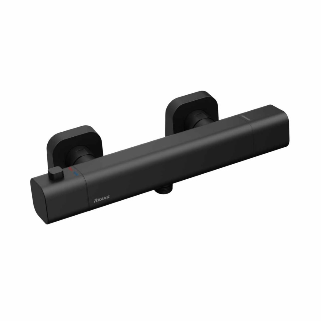 10° Free falra szerelhető termosztátos zuhanycsaptelep, zuhany szett nélkül. Matt fekete kivitelben. Állandó vízhőmérséklet beállítása.