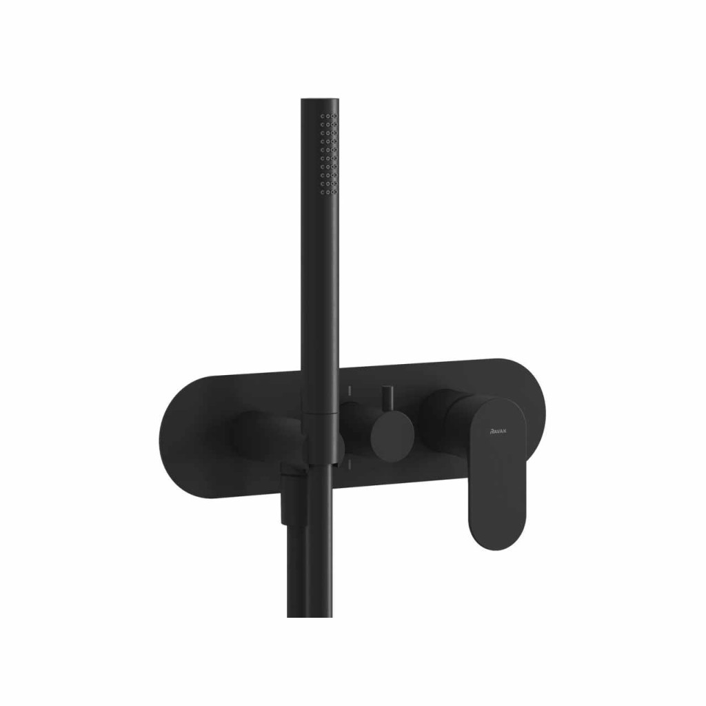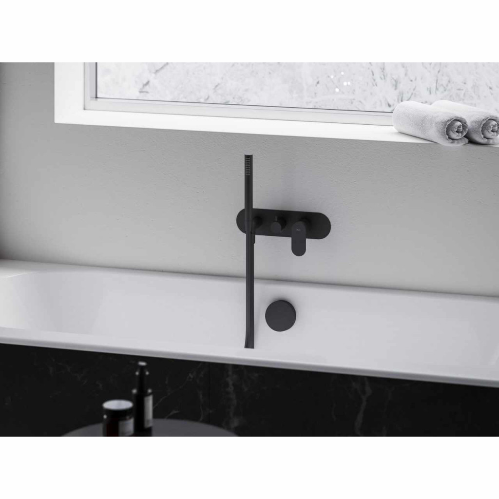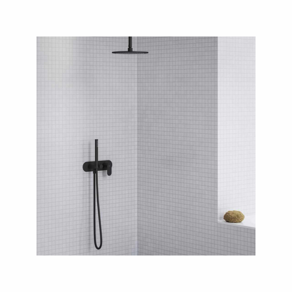 Eleganta falba süllyesztett 2-utas csaptelep, zuhanykészlettel, R-boxhoz. Matt fekete kivitelben.