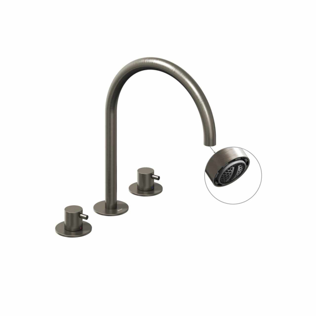 Espirit háromfuratos álló mosdócsaptelep lefolyó nélkül. Grafit kivitelben. Beépített perlátor EcoFlow funkcióval.