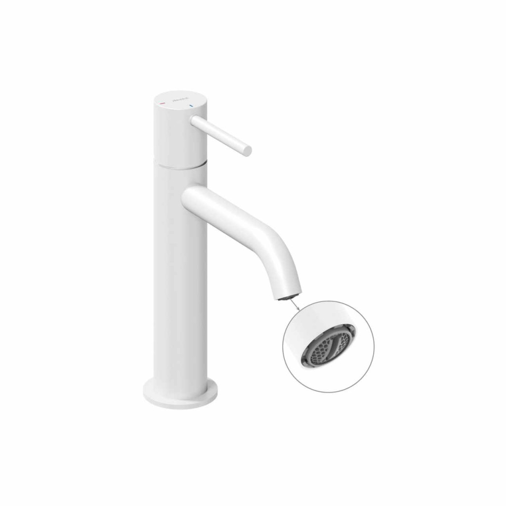 Espirit álló mosdócsaptelep leeresztő nélkül. White Velvet kivitelben. Rejtett perlátor EcoFlow funkcióval. BeCool funkció, amely csökkenti a vízfogyasztást.