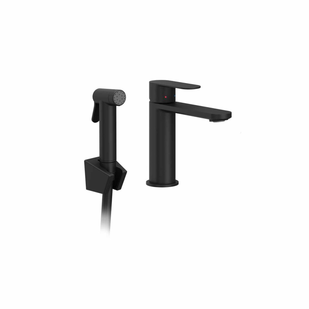Chrome II álló mosdócsapteleo bidézuhannyal, leeresztő nélkül. Fekete kivitelben.