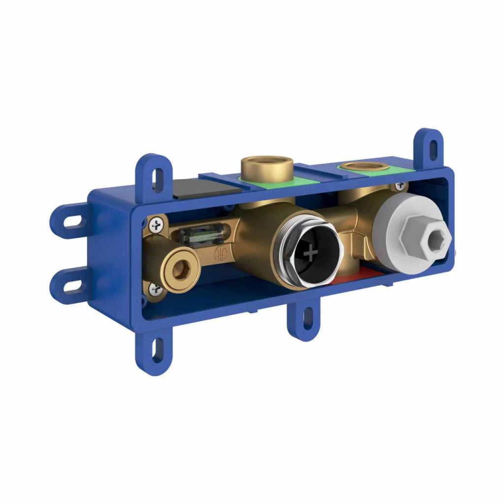 A beépített csaptelep alaptestje, az RB 07D.50 nem tartozék, és külön meg kell vásárolni. Az R-box tartalmazza a falhoz rögzítéshez szükséges anyagot, nem tartalmazza a vízvezeték csatlakozásokat vagy más vízvezeték-szerelvényeket. Az R-box tartalmazza a beépített csaptelep belső testjének munka műanyag fedelét, amely az R-boxban található, és még a csaptelep felső részének leszerelésekor is teljesen működőképesen tartja a vízellátást a fürdőszobában. Ezen műanyag rész segítségével a vízellátást szellőztetni lehet, vízleállás nélkül.