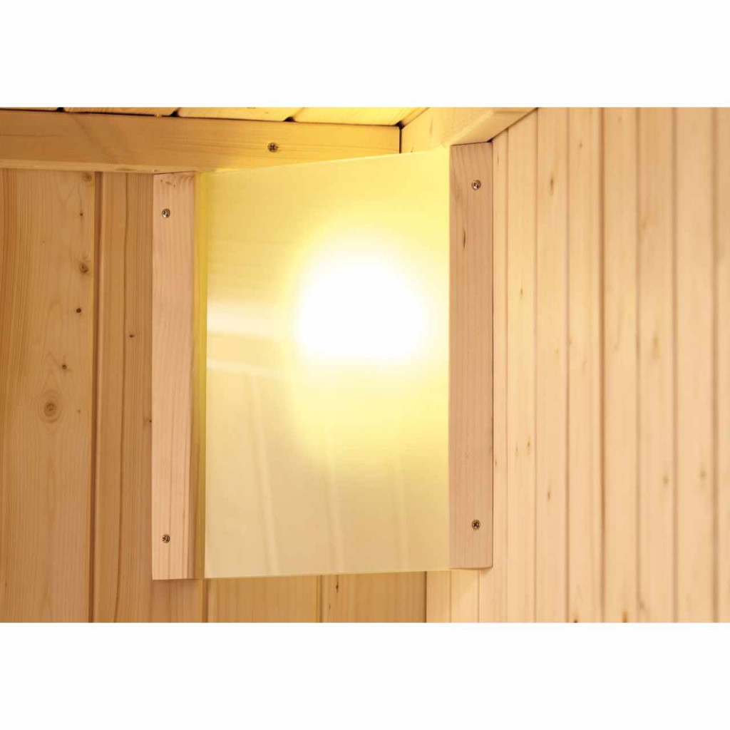 Teremtsen első osztályú hangulatot szaunájában a Premium Light segítségével. Nemcsak a tökéletes felszerelés vagy a kellemes szaunameleg gondoskodik arról, hogy ellazuljunk. A kellemes fényforrás szintén hozzájárul a jó közérzethez. A fény ne legyen túl világos, hogy kellemes és nyugodt környezetet teremtsen. Másrészt a fény ne legyen túl sötét, hogy ne rontsa el a hangulatot. Ezt az ideális légkört a Premium Sauna Light teremti meg. A lámpa teste homokfúvott, egyfalú biztonsági üvegből készült, fa kerettel. A homokfúvott üvegen keresztül a fény szétterül a szaunakabinban, és meleg, kellemes környezetet teremt. A lámpatest méretei (LxSxH) 26,9x30,4x2 cm, és bármely Caribou szaunába illeszkedik. A szaunakabinba való beszerelés nem foglal sok helyet. A szauna fénye még akkor sem zavaró, ha a szaunában felegyenesedve ül. Pihenjen tökéletes megvilágításban a Prémium szaunavilágítással.