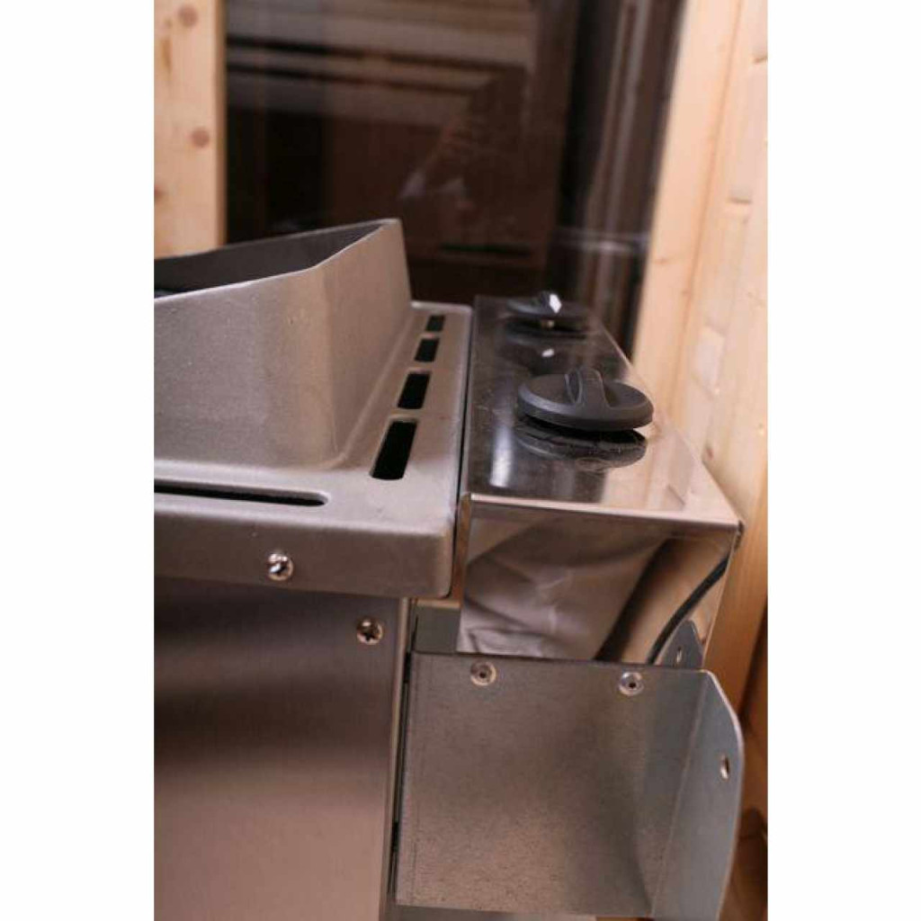 Nagy teljesítményű 9 kW-os szaunakályha beépített vezérlővel. A szaunakályhák nagy teljesítménye biztosítja az ideális szaunahőmérséklet elérését, kisebb szaunáknál általában 15-20 perc, nagyobb szaunáknál pedig 30-35 perc alatt (a szauna térfogatától és a környezeti körülményektől függően). A szaunakályhahoz 400 V, 16A védelem, 5 x 2,5 mm-es kábel szükséges, és a bekötést szakember ajánlja. A nagy előnye a szauna gyors felmelegedése. Hátránya azonban a kezdeti bonyolult kábelezés és a kissé magasabb áramfelvétel. Mielőtt megvásárolná ezt a tűzhelymodellt, ellenőrizze, hogy 400 V + legalább 16 A megszakító van-e a lakásában. Ez a modell nagyobb beltéri szaunákhoz alkalmas. Kültéri szaunákhoz a 26985-ös kódszámú külső vezérlővel ellátott 9 kW-os szaunakályha a legmegfelelőbb.