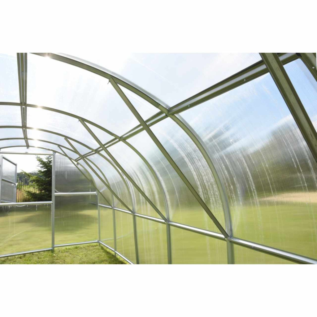 - az ívszerkezet 6 belső támasztéka jelentősen növeli az üvegház hóval szembeni ellenállását