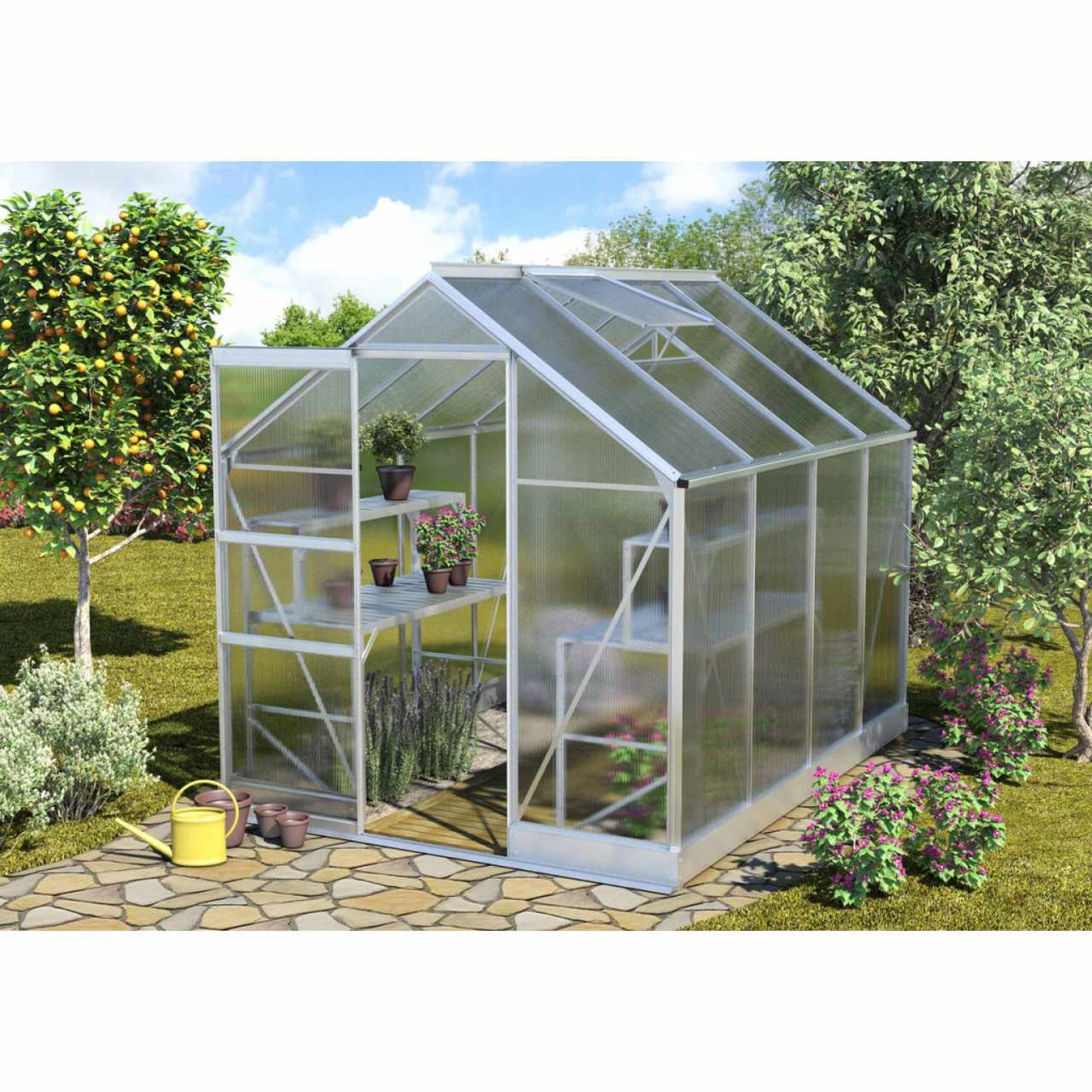 A csomag tartalmaz egyszárnyú tolóajtót (sz x ma = 0,61 x 1,74 m), AL profilokat, üvegezést, horganyzott acél talpat, 1x kézi nyitású tetőszellőző ablakot, minden rögzítőelemet. Az üvegházhoz számos tartozék vásárolható - polcok, állványok, másik szellőző tetőablak, automata nyitó, ereszcsatorna készletek, hőmérők, páratartalommérők.