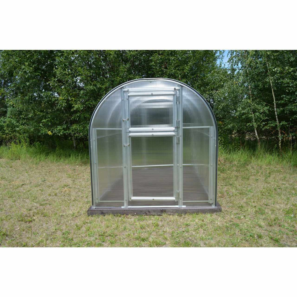Az üvegházszerkezetet 1 mm vastag és 65 mm széles eloxált alumíniumprofilokból csavarozták össze. Az összes csavarozott kötés alumínium csavarokkal és anyákkal, a zsanérok és merevítők rozsdamentes acélból készültek, így az üvegház teljesen korrózióálló. A tartóívek egyes bordái 100 cm távolságra vannak egymástól. Az elülső oldalon egy kétrészes ajtó található, az üvegház hátsó oldalán pedig egy szellőzőablak. Az üvegház nem átjárható. Különböző típusú polcok, hőmérők, higrométerek stb. kiegészítő tartozékként vásárolhatók.