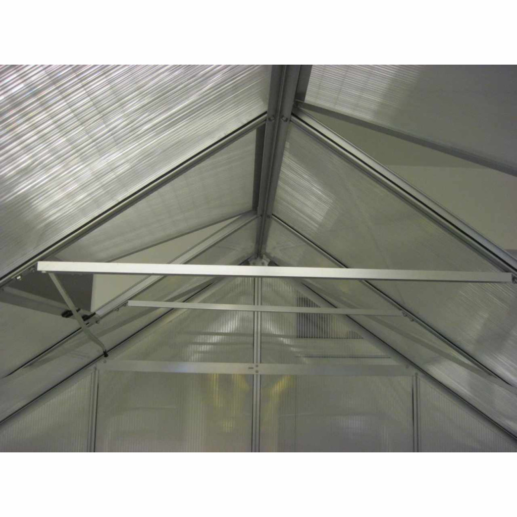 A csomag tartalma: kétszárnyú tolóajtó (nyílás mérete: sz 1,22 x ma 1,91 m), alumínium profilok, üvegezés, 2x db tetőszellőző ablak manuális nyitással, valamint minden szükséges rögzítő anyag. Az üvegház építhető például tégla alapra vagy horganyzott lemezből készült alapra. Alap nélküli építés esetén az alap vásárlását javasoljuk. Az üvegházhoz számos extra kiegészítő vásárolható, például polcok, állványok, további tető- és oldalsó szellőzőablakok, automatikus nyitók ezekhez az ablakokhoz, ereszcsatorna készletek, hőmérők és páramérők.