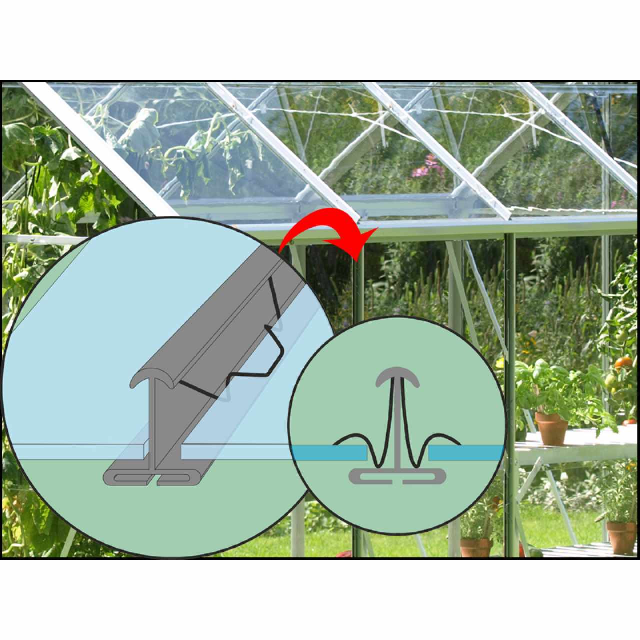 A VENUS sorozat üvegházai PRÉMIUM kategóriába tartoznak - az üvegházat egy brit márkás gyártó készíti, és a német TÜV vizsgáló intézet tanúsította. Az üvegház eloxált alumínium profilokból készül, az üvegezés 3 mm vastag edzett átlátszó üvegből. Az átlátszó üveg kiváló fényáteresztést biztosít, így az üvegház minden oldalról jól látható, és bármikor élvezheti a termesztett zöldségek vagy virágok látványát. Az üvegezés acélkapcsokkal van rögzítve az alumínium profilokhoz.