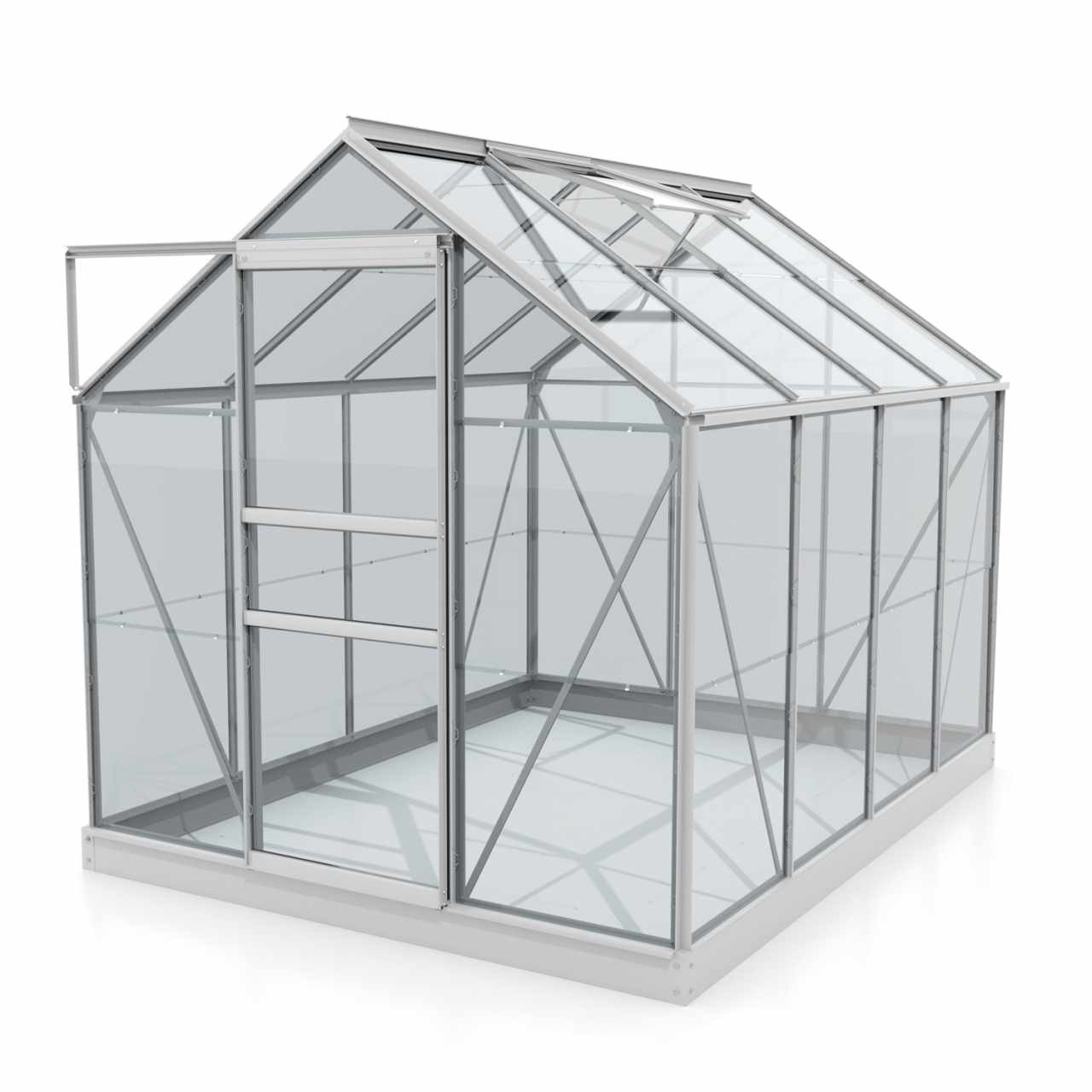 A VENUS sorozat üvegházai PRÉMIUM kategóriába tartoznak - az üvegházat egy brit márkás gyártó készíti, és a német TÜV vizsgáló intézet tanúsította. Az üvegház eloxált alumínium profilokból készül, az üvegezés 3 mm vastag edzett átlátszó üvegből. Az átlátszó üveg kiváló fényáteresztést biztosít, így az üvegház minden oldalról jól látható, és bármikor élvezheti a termesztett zöldségek vagy virágok látványát. Az üvegezés acélkapcsokkal van rögzítve az alumínium profilokhoz.
