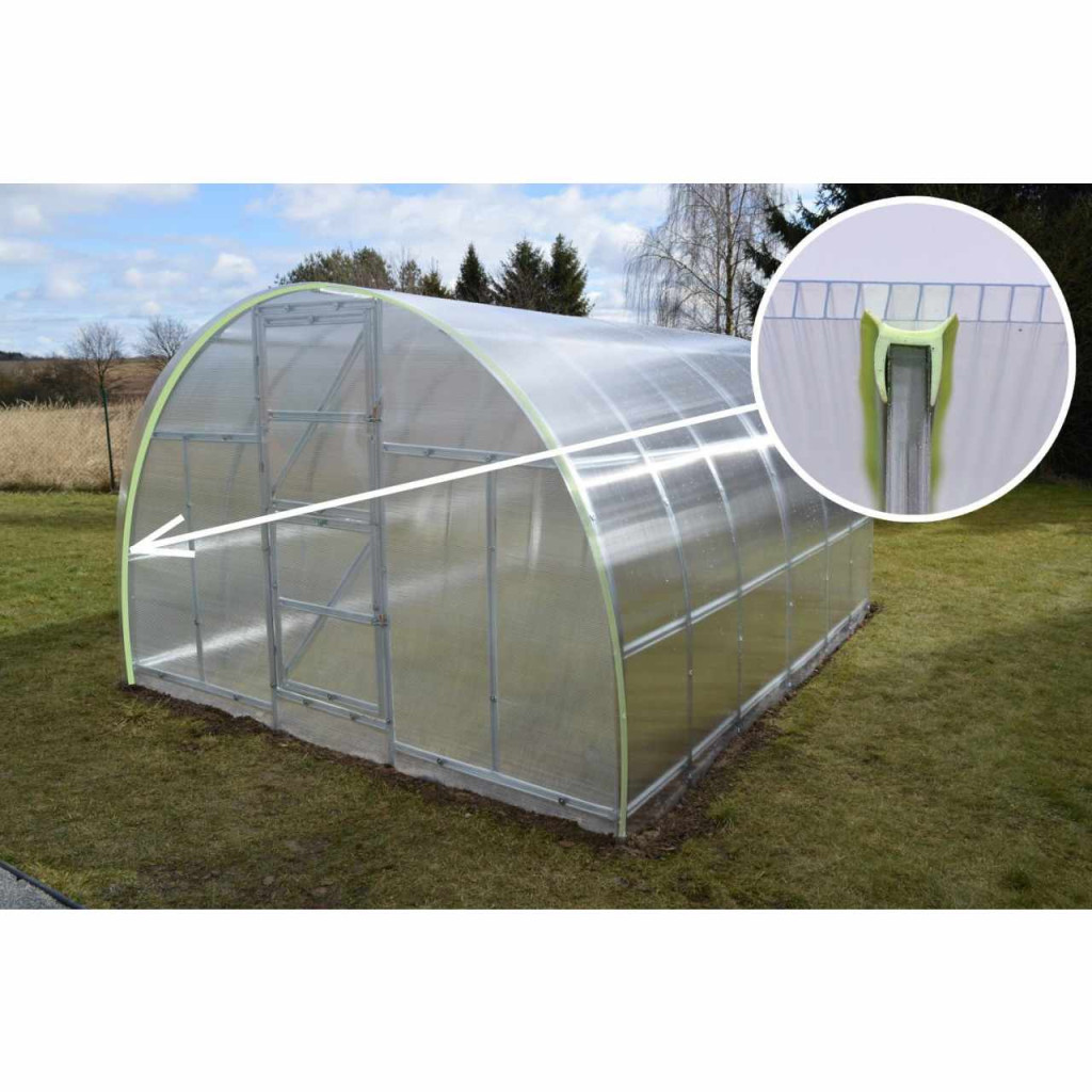 Eredeti LANITPLAST üvegházi tömítés a polikarbonát nyitott széleihez. A tömítés az üvegházak elejére és hátuljára kerül, ahol tökéletes és szoros kapcsolatot biztosít az elülső fal és az üvegházhéj között. Az alapcsomag 10 m hosszúságban kerül forgalomba, mivel pontosan ez a hosszúság szükséges az üvegház mindkét oldalának tömítéséhez. Ez a termék 4 és 6 mm-es polikarbonátból készült üvegházakhoz alkalmas. A 8 és 10 mm-es polikarbonátból készült üvegházakhoz méretre nem alkalmas.